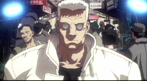 Both Kenji Kawai's melodic score and Oshii's composition of the film lend a surreal quality to the reality presented in the film, as hard-edged as that reality is; there is a scene in which Motoko is merely walking through the rain, contemplating her existence, seeing others whose cybernetic bodies are eerily similar to her own, that is so well composed I'd love to have a bit of art evoking the same feelings ... unfortunately, the moment a still from that scene is taken, it loses that very feeling, like a flake of paint from a Van Gogh cannot possibly capture the art it was a part of.