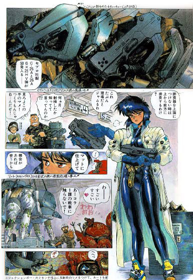 In addition to the philosophy, we have a heavy dose of Shirow's fascination with science, as enthused by his copious notes (which are often embedded in the comic itself, right there with the story and art).