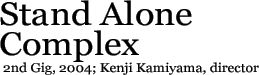 Unlike the first SAC series, this one came out when I was too busy to keep up with it, and now, when I'm ready for it, it's never on when I'm watching. So, sadly, I can't review it yet. (But I will soon; otherwise I wouldn't have made a space for it and embarrassed myself by admitting I haven't seen it. The sooner I can get this text taken down ...)