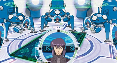 And there is something in the manga that doesn't show up in the film: Fuchikoma, personal mecha that function both as battlesuits and as independent robotic units, capable of their own (limited) thought and actions. They figure prominently in both the action and in Masamune Shirow’s exploration of "life." (They also show up in the TV series Stand Alone Complex, but rechristened "Tachikomas.")